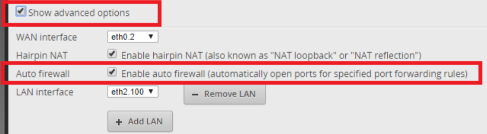 - If you use the port forwarding feature, the firewall rules are created automatically (if the auto-firewall option is enabled).